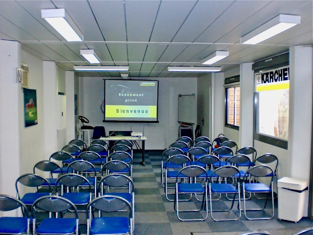 Salle climatisée de 50 m² équipée d’un écran et d’un vidéo projecteur, conviendra en Salle de sous commission - réceptif - accueil clients.