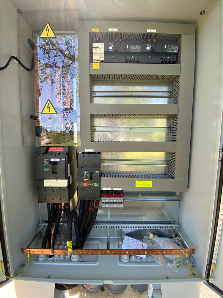 - Paddock piste asphalte : Une arrivée électrique d’une puissance de 240 kVa (400A) est disponible sous forme d’une armoire électrique munie de disjoncteurs spécifique afin de pouvoir brancher rapidement une ou plusieurs bornes de charge pour véhicules électriques et hybrides rechargeable.